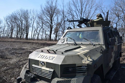 △当地时间2021年4月,乌克兰东部地区顿巴斯,当地武装部队在边境巡逻。