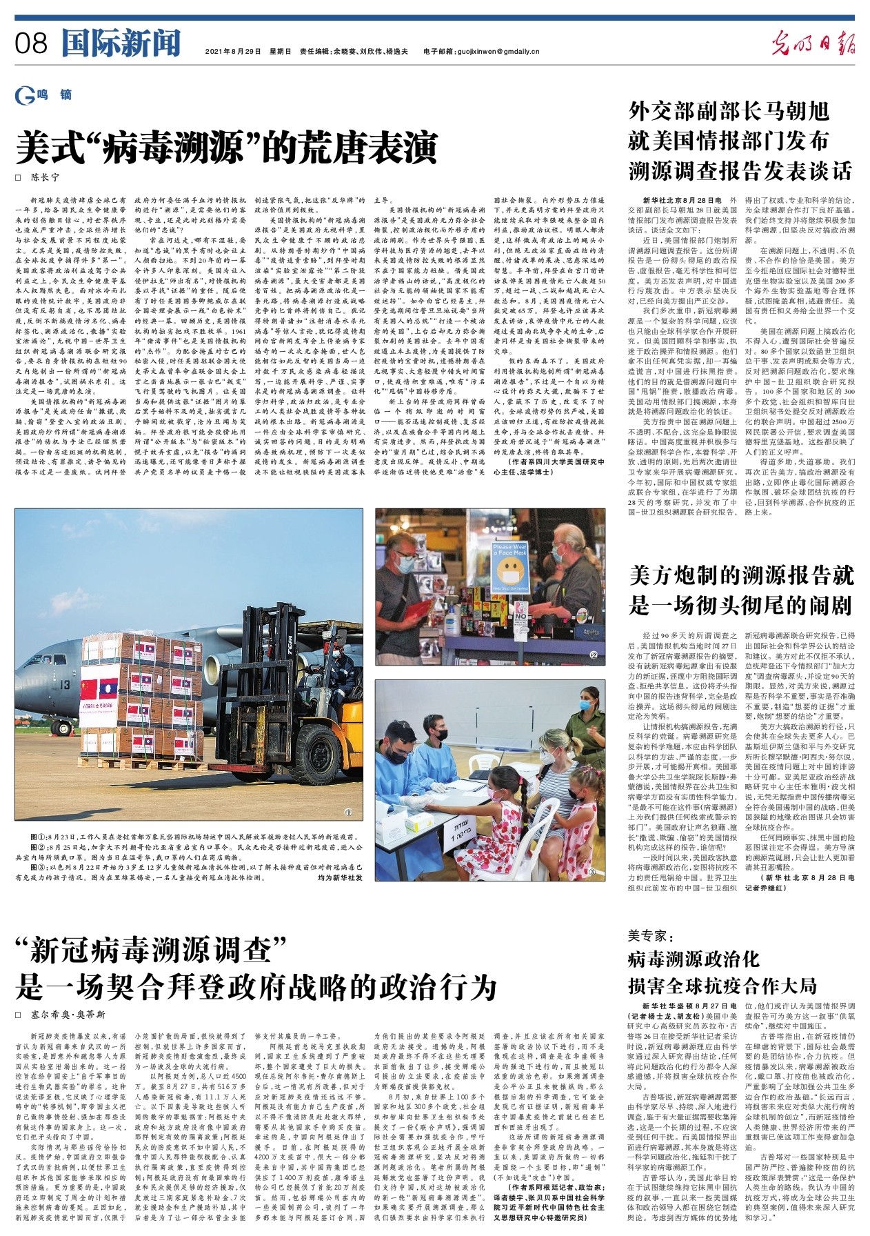 美国情报机构的“新冠病毒溯源报告”是美政府任由“撒谎、欺骗、偷窃”登堂入室的政治丑剧。美国政府炒作所谓“新冠病毒溯源报告”的动机与手法已经昭然若揭。一份由劣迹斑斑的机构炮制,预设结论、有罪推定、诱导偏见的报告不过是一叠废纸。试问拜登政府为何委任满手血污的情报机构进行“溯源”,是需要他们的客观、专业,还是此时此刻格外需要他们的“忠诚”?
