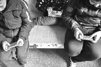 浙江绍兴,几个孩子坐在一起玩网络游戏。许康平摄/光明图片