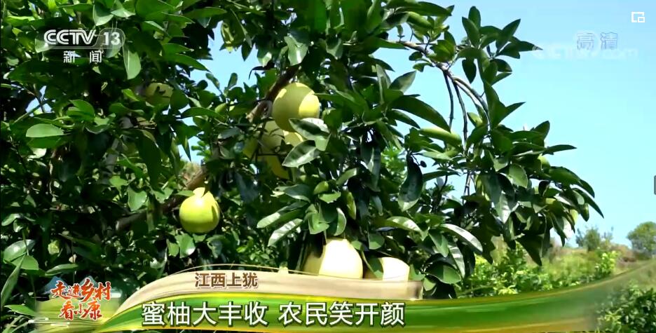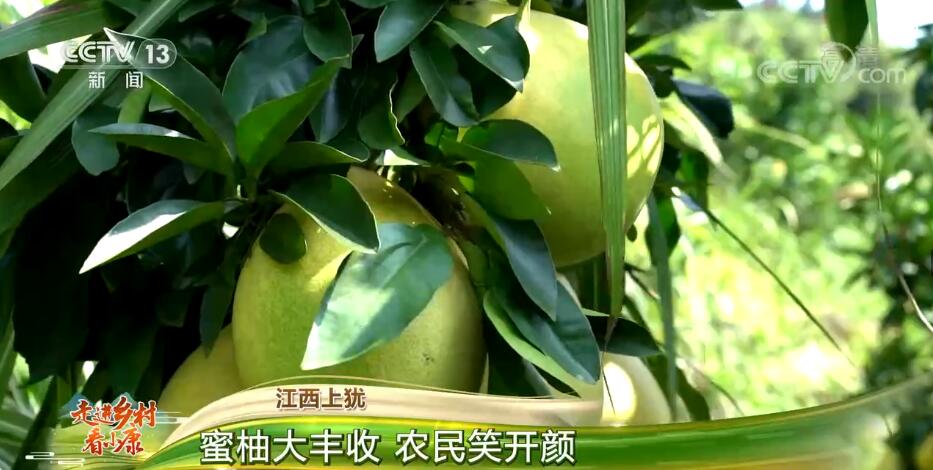 金秋时节,蜜柚飘香。您现在看到的是江西上犹 东山镇的万亩三红蜜柚基地。果园里,蜜柚挂满了枝头,压弯了树腰。2013年,当地通过土地流转在东山镇的丘陵地带建起了这片蜜柚基地,今年已是丰产期的第四个年头。周边农民通过在基地工作,年工资性收入就有2万多元,为群众增收致富开辟了新路。(央视网)