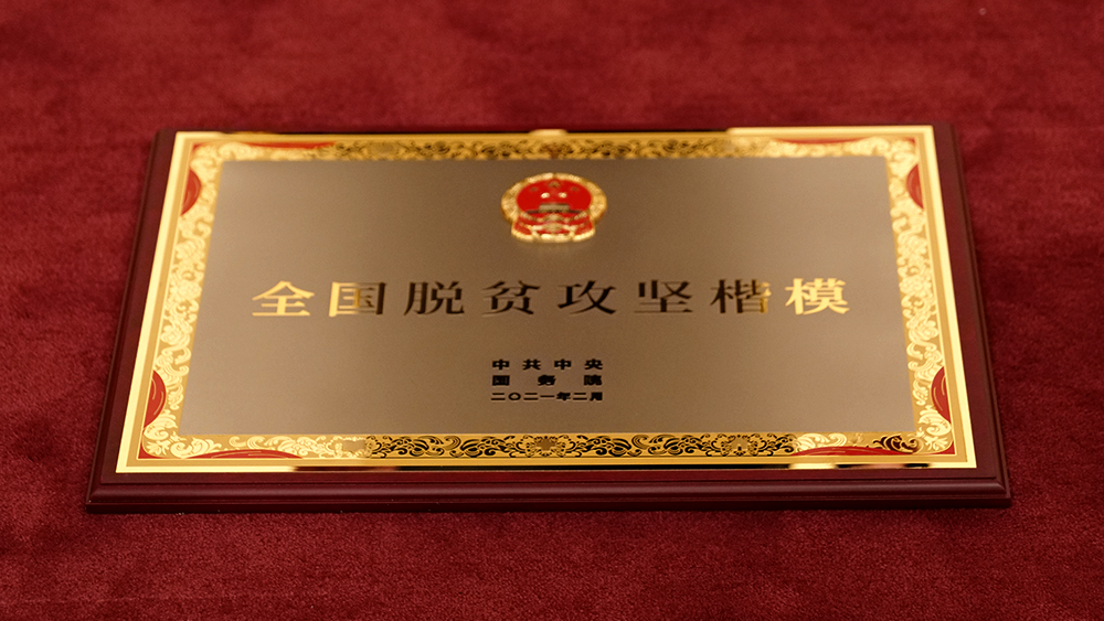 “全国脱贫攻坚楷模”奖牌。(总台央视记者彭汉明拍摄)