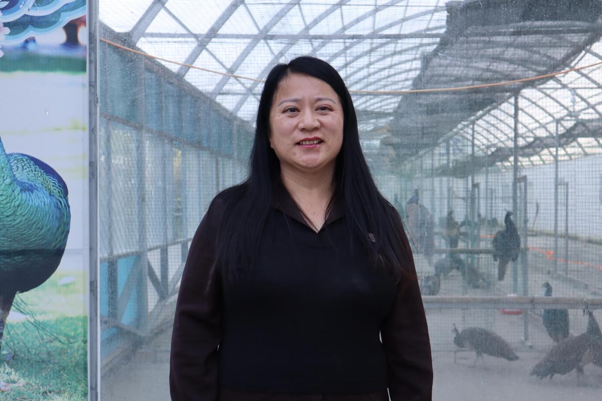 (周海燕和她身后的孔雀舍 央视网记者 王静远 摄)