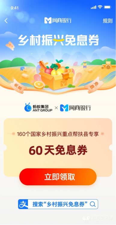 昆明信息港讯 记者昝娟娟 2021年“中国农民丰收节”前夕,全国160个国家乡村振兴重点帮扶县的农户、小店、电商等群体均可获得60天免息贷款支持,其中贵州有20个。自9月23日起,这些县域符合条件的用户上支付宝搜“乡村振兴免息券”,即可在线申请免息贷款。