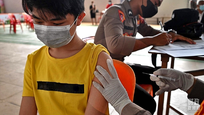 2021年9月22日,印度尼西亚班达亚齐,当地民众接种中国新冠疫苗。(图/视觉中国)