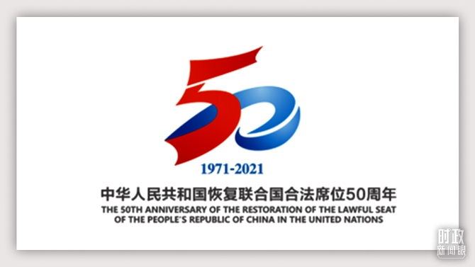 2021年6月15日,外交部发布“中华人民共和国恢复联合国合法席位50周年”主题标识。主题标识以中华人民共和国国旗红色和联合国旗帜蓝色为主色调,由数字“50”同“飘带”造型融合而成,寓意交融共赢。