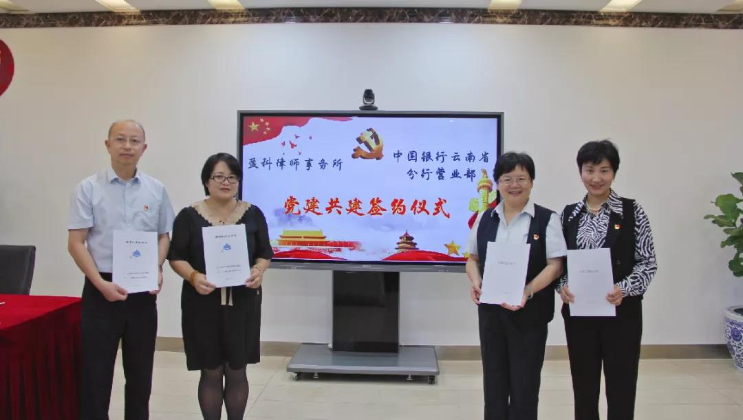 北京盈科(昆明)律师事务所党总支与中国银行云南省分行营业部党支部结为党建共建单位,签署了《党建共建协议书》。