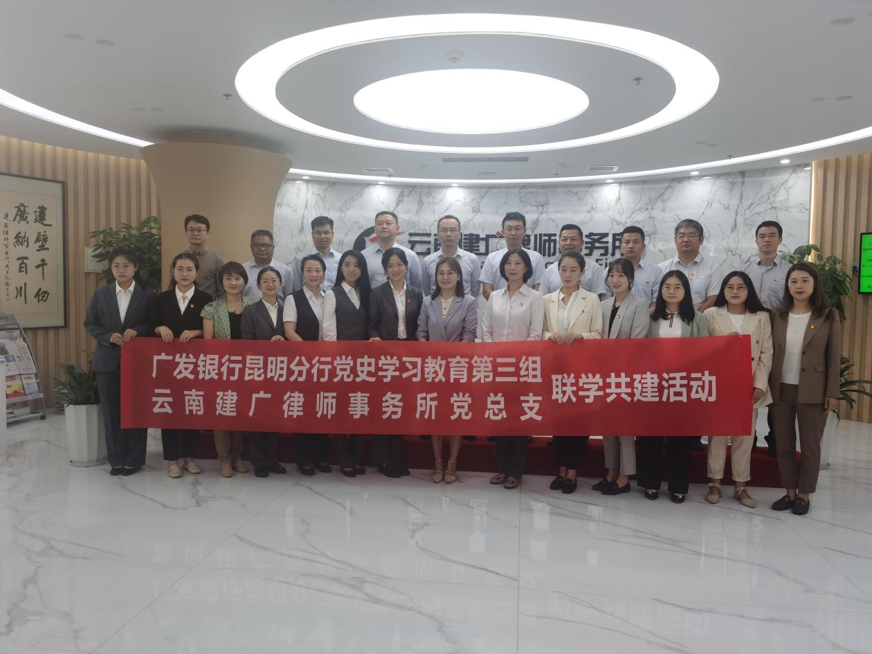 云南建广律师事务所党总支与广发银行昆明分行党史学习教育第三组开展联学共建活动。