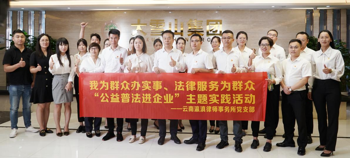 云南瀛滇律师事务所党支部到云南大雪山茶叶有限公司开展“企业合同法律风险防范”主题普法讲座;到驻地社区(官庄社区)开展妇女儿童权益保障宣传、宪法宣传等活动。