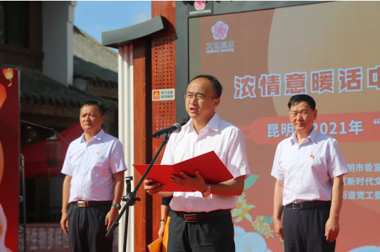 昆明市委原常委、昆明警备区原政委、昆明市创文总指挥部副指挥长方兴国宣布昆明市2021年“我们的节日·中秋节”主题活动启动。