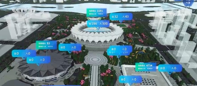 设置在场馆内的人工智能客流统计摄像机和鹰眼摄像机等智慧系统,为赛事管理人员提供了一双双“火眼金睛”,帮助他们实时掌握赛场周边的环境监测、场馆运营等动态信息,在对数据进行分析后,便于作出科学的决策。