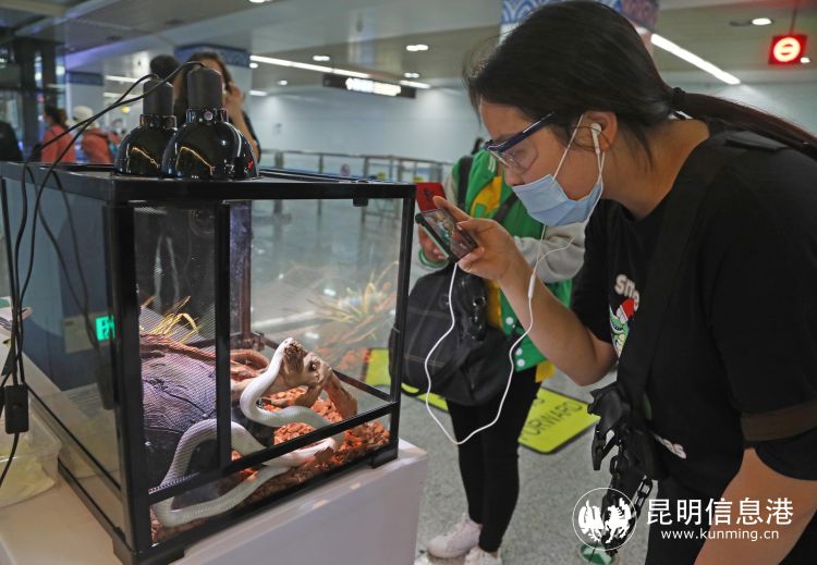 活动现场来往进出乘客纷纷驻留脚步,一边拿出手机对着它们不断拍照,一遍发出连连惊叹。现场参观的李女士对这样的科普方式表示十分赞赏:“一般我们只能在电视上和图片上看见的动物搬到了现实中来,能更加仔细地观察动物的形态,这对我们普通市民去了解动物,学习生物多样性有了更好的空间。