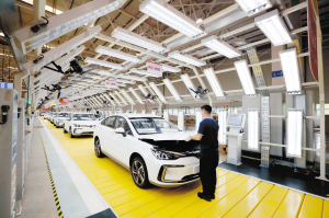 北汽新能源汽车生产线。 记者李海曦摄