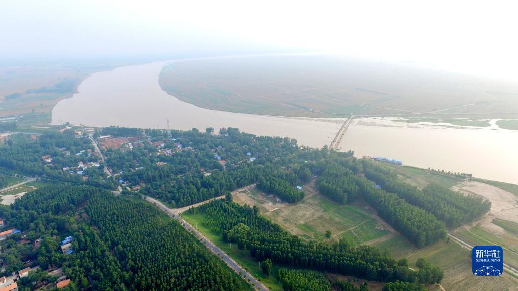 河南省兰考县东坝头乡拍摄的黄河河道(2018年6月19日摄,无人机照片)。新华社记者 冯大鹏 摄