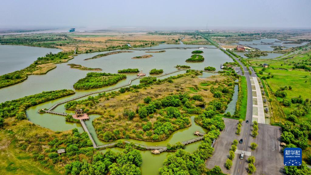 2021年5月13日拍摄的山东黄河三角洲国家级自然保护区景色(无人机照片)。新华社记者 郭绪雷 摄