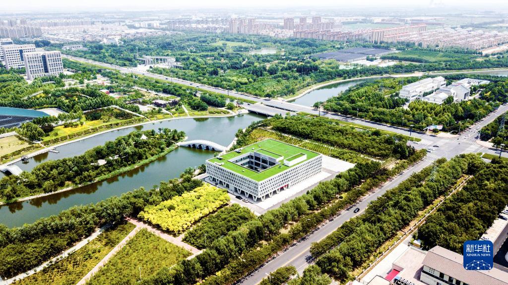 这是2018年6月24日拍摄的山东省东营市垦利区城市景色(无人机照片)。新华社记者 吴刚 摄