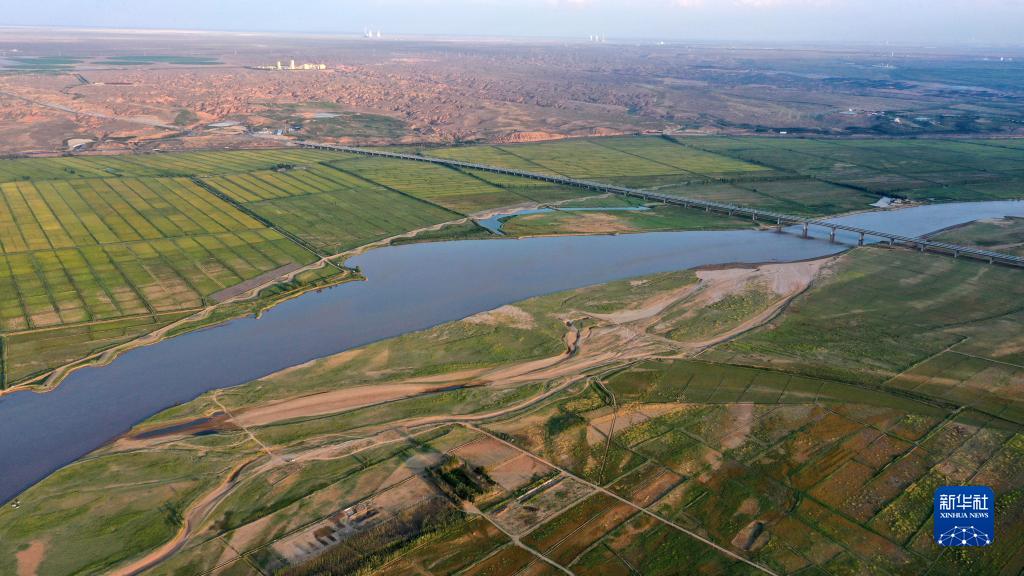 这是2021年8月28日拍摄的黄河宁夏银川段景色(无人机照片)。新华社记者 王鹏 摄