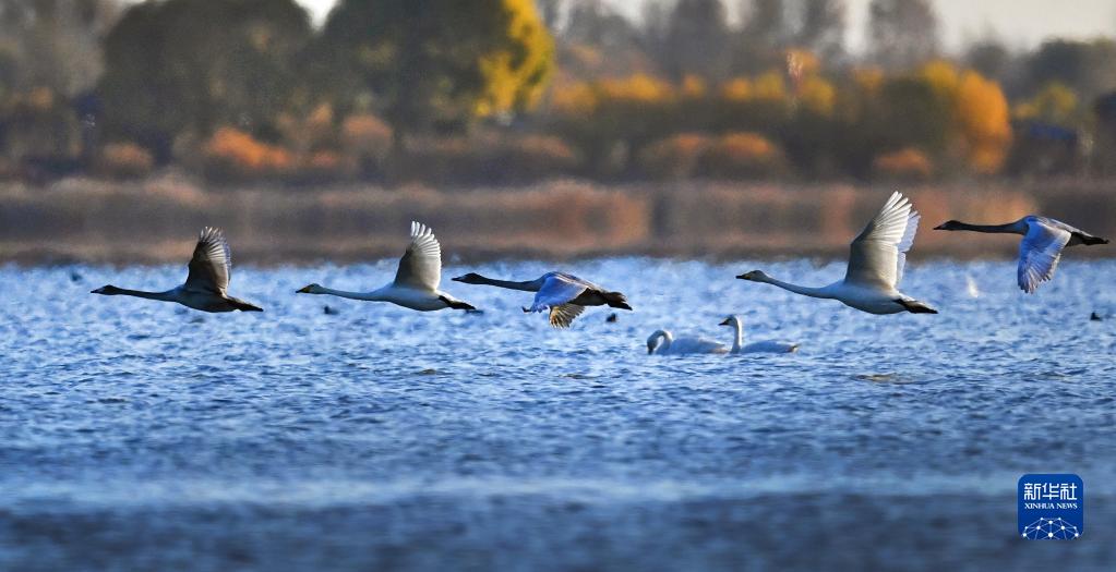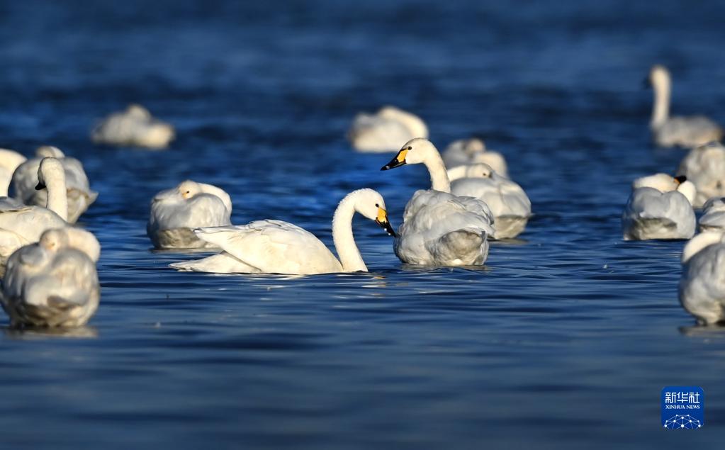 10月30日在河口水库湿地拍摄的白天鹅。(新华社记者 陶明 摄)