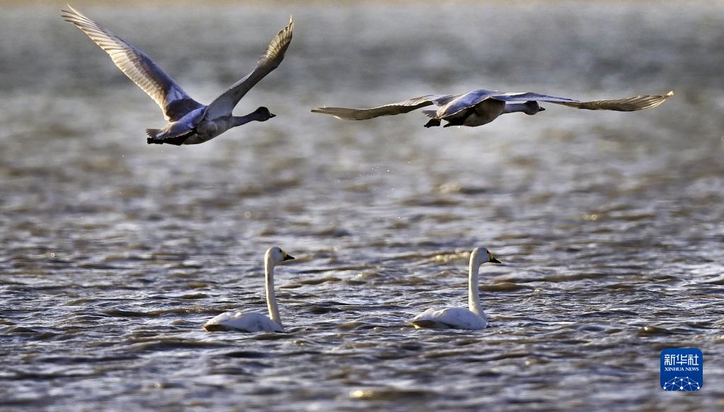 近日,陕西省榆林市榆阳区河口水库湿地迎来大批白天鹅、赤麻鸭等鸟类。近年来,位于毛乌素沙地南缘的榆阳区采取退牧还湿、禁牧减畜等有效措施,加强生态环境保护。河口水库湿地拥有大量浅滩、芦苇,地势平缓,水域宽广,野生鱼虾资源丰富,已经成为越冬候鸟途中觅食、停歇的理想之地。