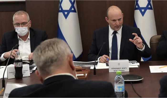 贝内特总理在10月3日的新冠病毒内阁会议上。