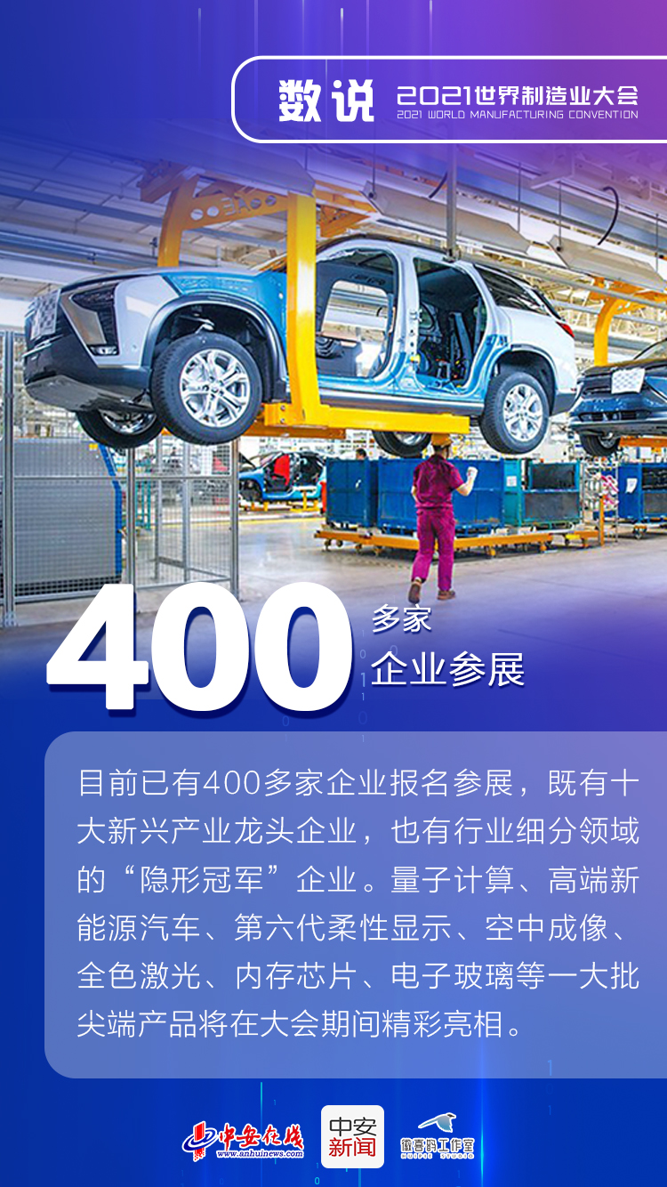 11月19日至22日,2021世界制造业大会将在安徽省合肥市滨湖国际会展中心举行。本届大会以“创新驱动,数字赋能,携手全球制造业高质量发展”为主题,“数字”是本届制造业大会的关键词。一组海报,带你“数说”世界制造业大会。(中安在线、中安新闻客户端 作者程玉涵 戴芮)