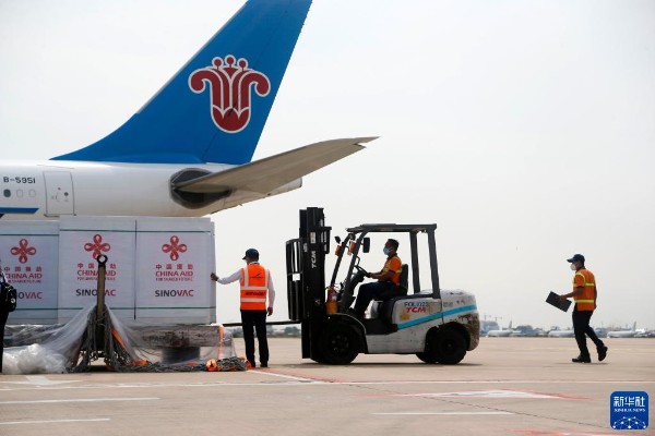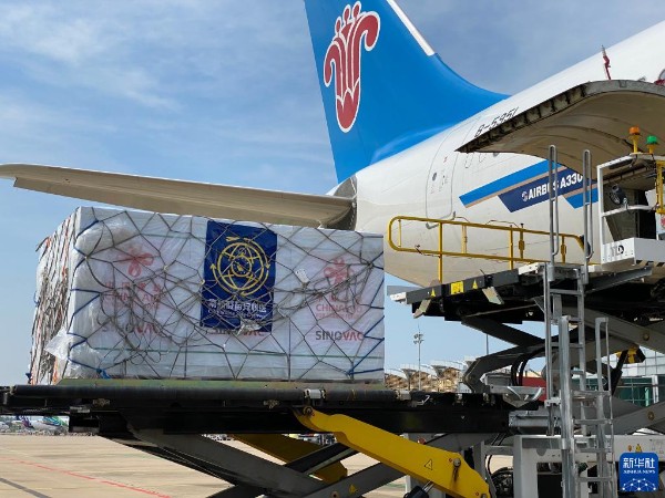 11月17日,中国援柬第七批新冠疫苗抵达柬埔寨金边国际机场。(新华社发 罗军/摄)