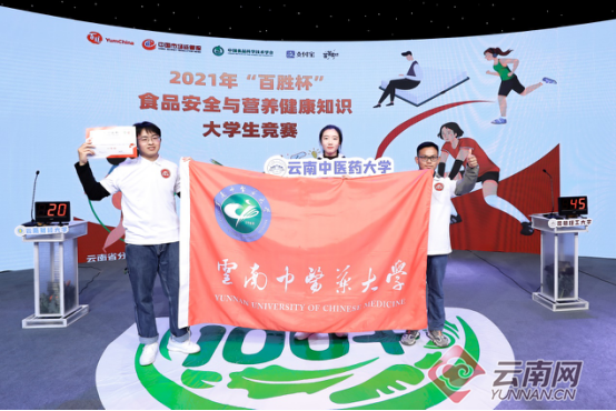 11月12日,2021年“百胜杯”食品安全与营养健康知识大学生竞赛云南省分站赛于昆明广播电视台演播厅举行,来自本省6所高校的同学们同场竞技、展开角逐。最终,云南中医药大学代表队脱颖而出,获得云南省分站赛的冠军,他们将代表云南省参加全国总决赛。