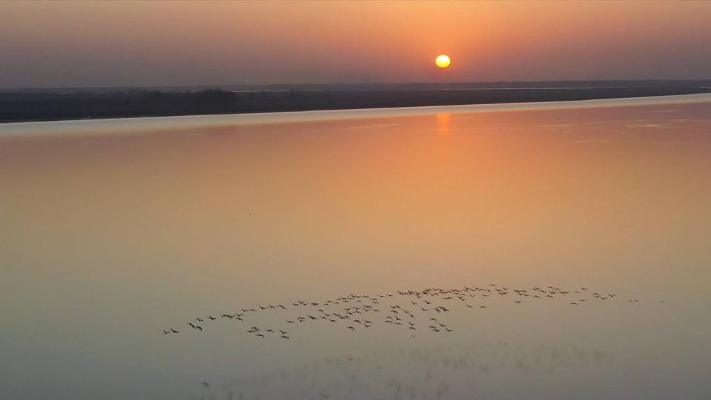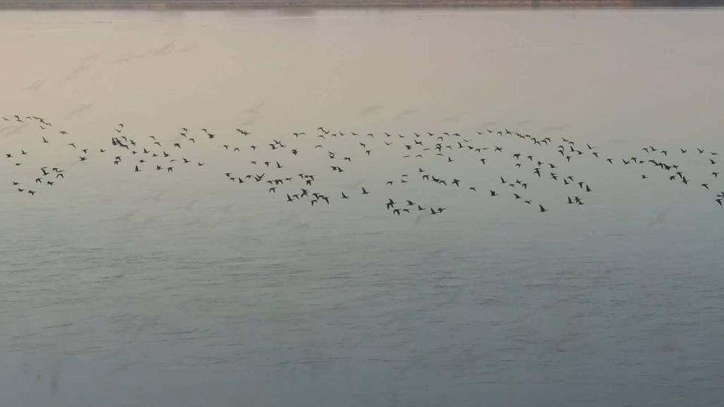 初冬时节,河南省开封市兰考县东坝头黄河湿地保护区,迎来了南迁越冬的大雁。它们在这里停歇觅食,演练队形,补充体力,为南迁越冬做准备。
