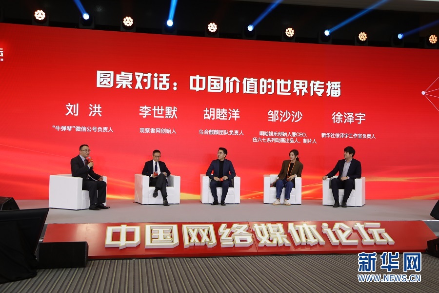 11月24日,由新华网承办的2021中国网络媒体论坛内容论坛在广州举行。论坛上,观察者网创始人李世默、乌合麒麟团队负责人胡睦洋、啊哈娱乐创始人兼CEO邹沙沙、新华社记者徐泽宇围绕“中国价值的世界传播”进行对话交流。