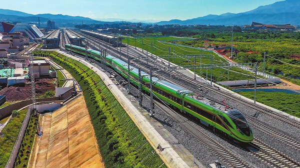 近日,中老铁路试运行动车组列车运行至西双版纳站。(云南日报 通讯员陈畅/摄)