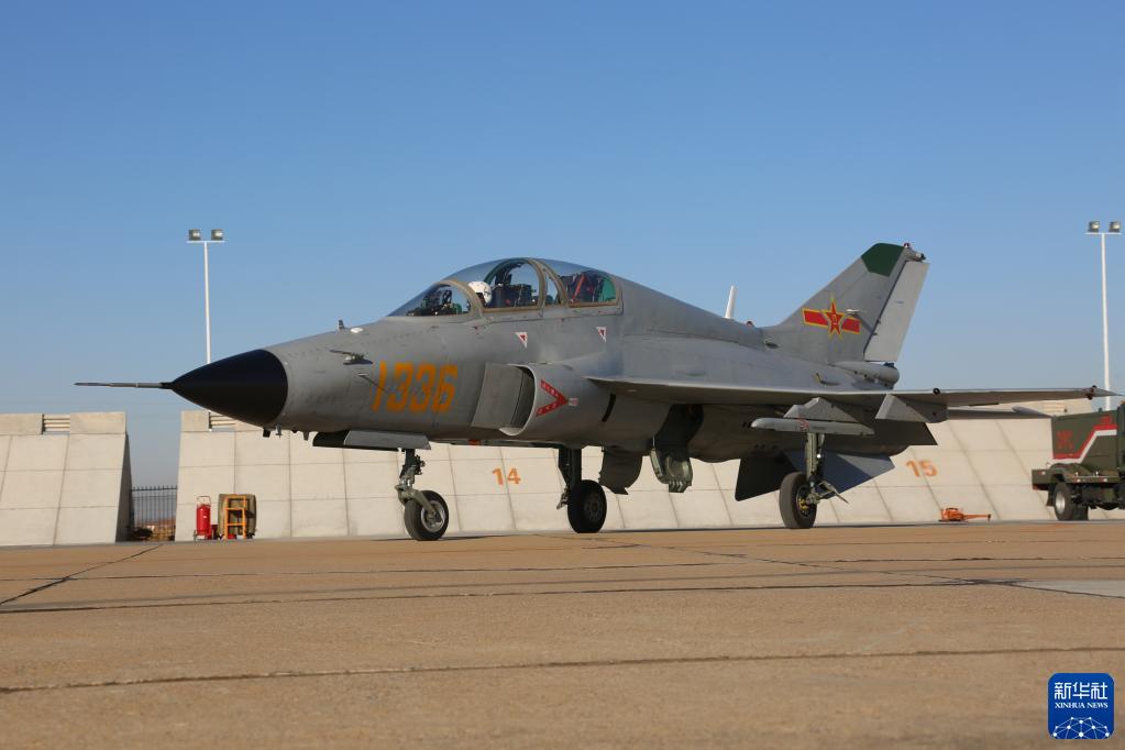 空军哈尔滨飞行学院实战化训练新模式下首批学员独立驾驶战机滑向起飞线(2017年11月8日摄)。新华社发(丁荟萌 摄)