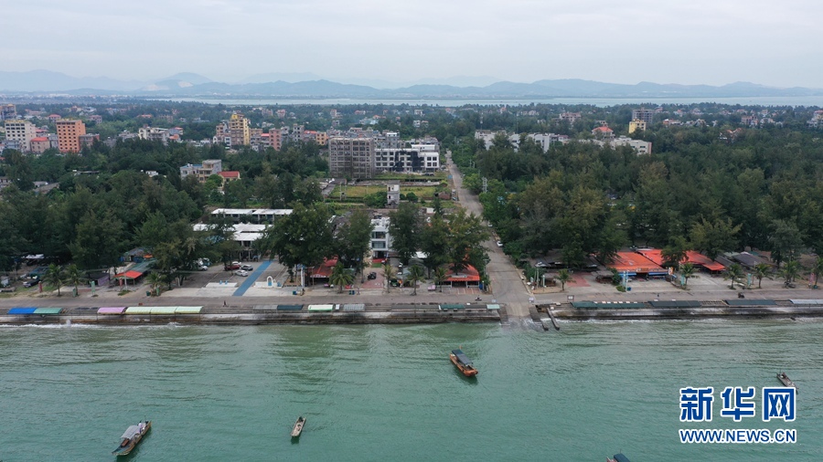 无人机航拍金滩边的氵万尾村。新华网 刘君 摄