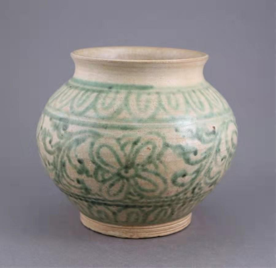 兰纳地区,白底绿彩陶罐 15-16 世纪 私人收藏