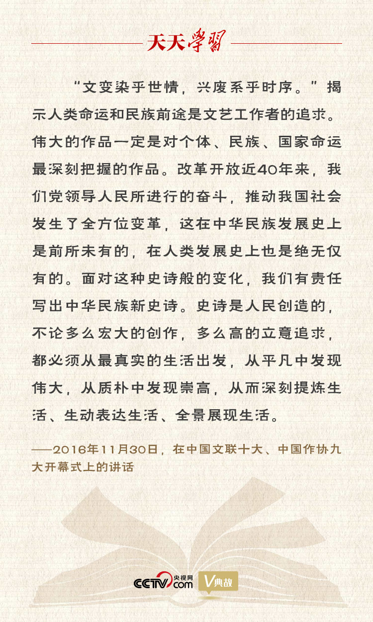 2019年3月4日,习近平总书记在看望参加全国政协十三届二次会议的文化艺术界、社会科学界委员时殷殷叮嘱:“希望大家承担记录新时代、书写新时代、讴歌新时代的使命,勇于回答时代课题,从当代中国的伟大创造中发现创作的主题、捕捉创新的灵感,深刻反映我们这个时代的历史巨变,描绘我们这个时代的精神图谱,为时代画像、为时代立传、为时代明德。”新时代的中国文艺工作者要牢记总书记的嘱托,把握时代脉搏,承担时代使命,聆听时代声音,创作出无愧于我们这个伟大时代、无愧于我们这个伟大国家、无愧于我们这个伟大民族的优秀作品,努力筑就中华民族伟大复兴时代的文艺高峰!(中央广播电视总台央视网 作者杨立新)