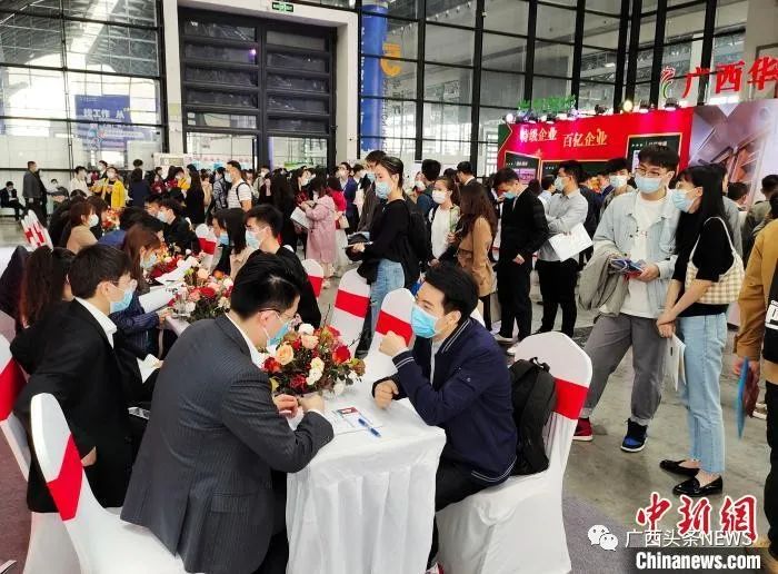 3月13日,2021年春季广西人才交流大会在南宁国际会展中心举办,这是广西今年首场线下超大型招聘活动,提供近5万个岗位。 黄艳梅/摄
