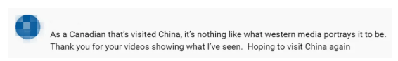 ▲作为一个访问过中国的加拿大人,我看到的景象完全不像西方媒体所描绘的那样。希望能再次访问中国。