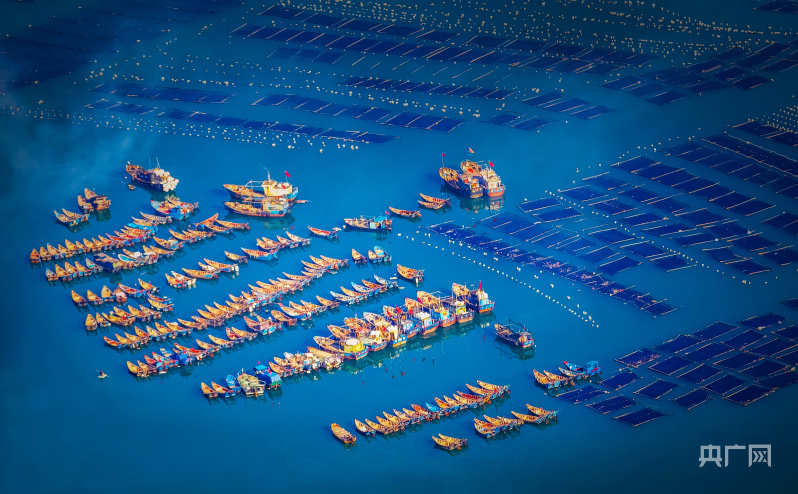 福建省连江县黄岐镇海域渔船、渔排相映成趣(央广网发 程庆雄摄)