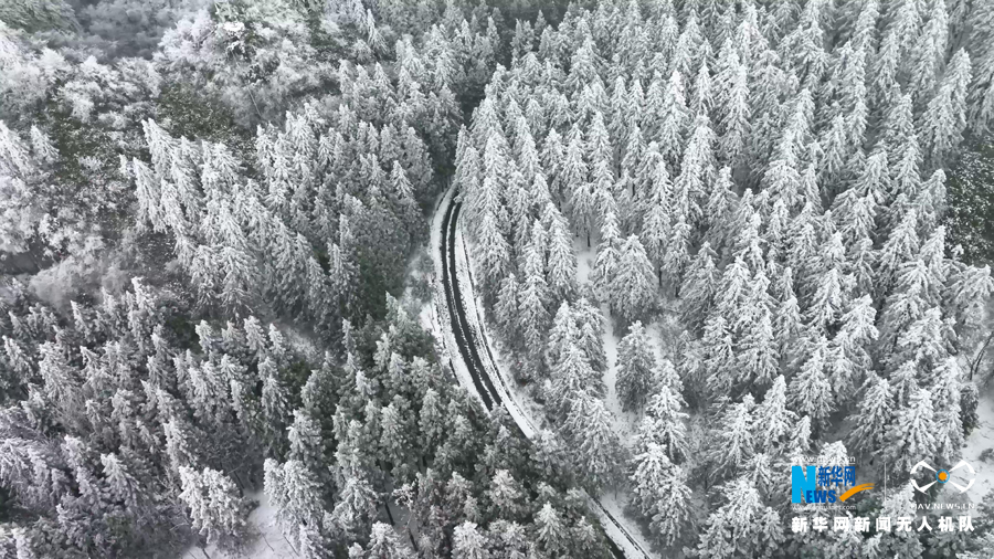雪后摩围山呈现出不输北方林海的雪景。新华网发(甘勋乐 摄)