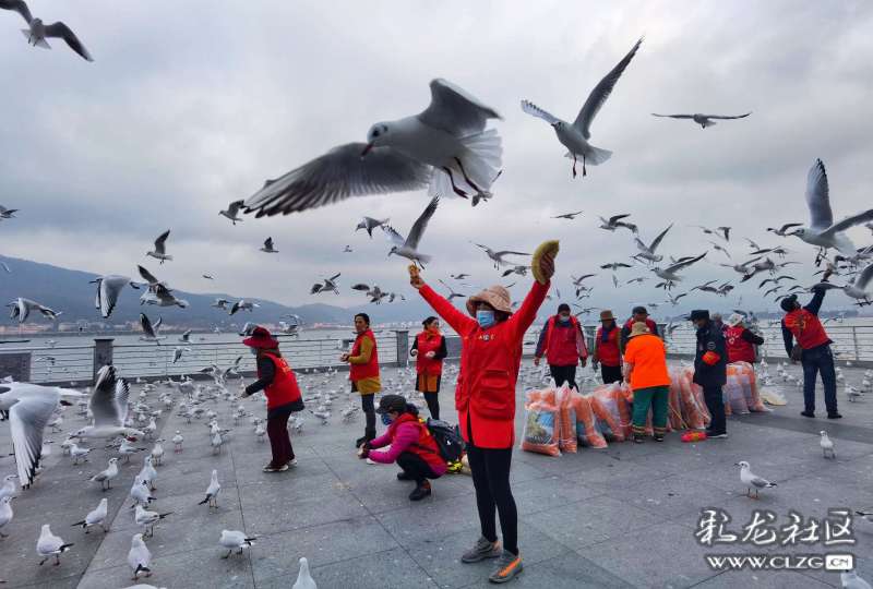 记得2020年2月,当整个城市按下暂停键的时候,小海鸥们惊奇,昆明的老朋友呢?你们躲到哪去了?他们有的饿得停在围栏上,有的跑到公路上,是这些志愿者们,每天冒着感染的风险,自己掏钱购买鸥粮,自己用小推车拉着在各个喂鸥点投食,让小海鸥们在疫情期间没有断粮。因为有很多的志愿者,包括善良的市民都像对待老朋友、对待亲人一样的爱护海鸥,爱护春城的生态环境,海鸥才三十几年坚持飞到昆明。