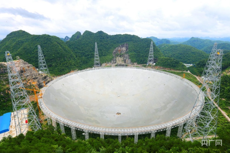 位于黔南州平塘县大窝凼的500米口径球面射电望远镜(FAST),是目前世界上最大的单口径射电望远镜,有“中国天眼”之称。作为国家重大科技基础设施,这一观天巨目、国之重器,正坐落在群山环抱之中,凝望星空,探寻宇宙。