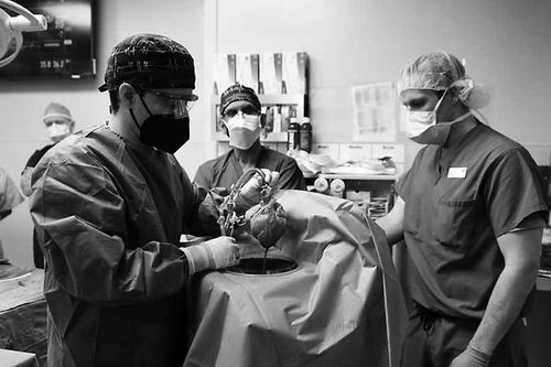 医生准备移植猪心脏。图片来源:马里兰大学医学院