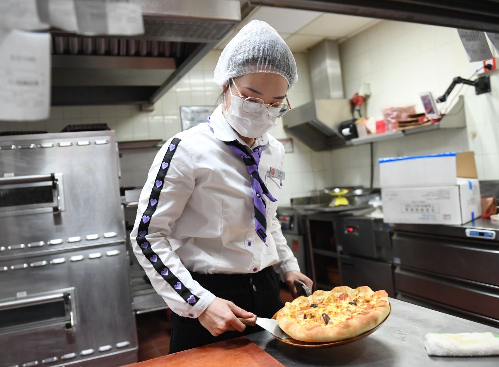 1月13日,在西安市一家连锁餐厅,店员制作外卖菜品。新华社记者 李一博 摄