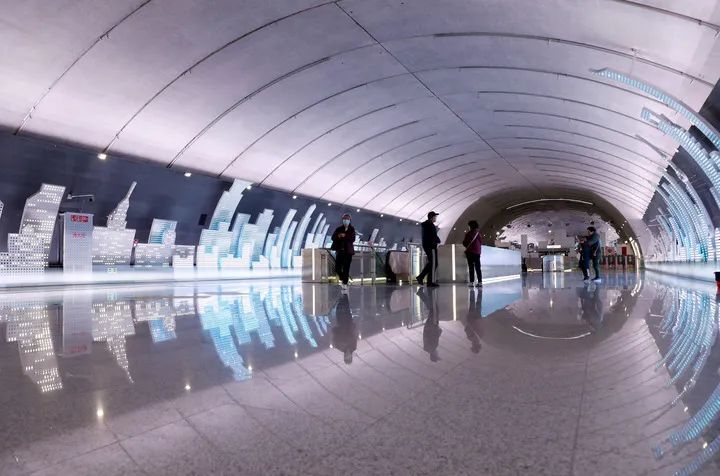 2021年2月9日拍摄的上海地铁15号线吴中路站站厅内景。新华社记者 方喆 摄