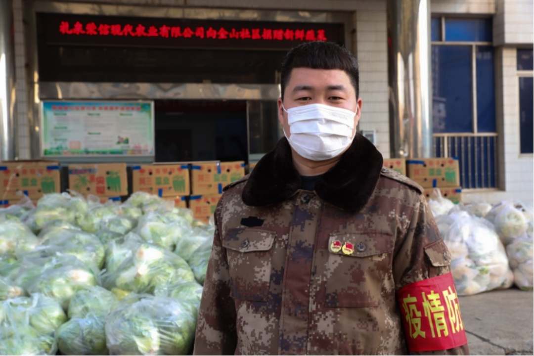 2022年1月1日,咸阳退伍军人靳小锋向金山社区捐赠新鲜蔬菜。赵文华 摄