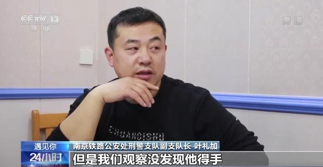 南京铁路公安处刑警支队副支队长 叶礼加:发现他(嫌疑对象)在车厢里面,在14、15、17三个车厢都动了,但是我们观察没发现他得手。