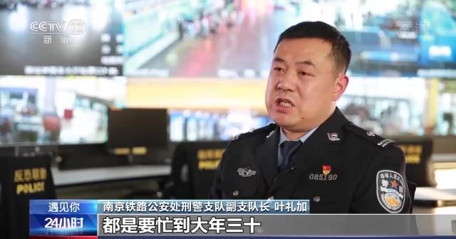 南京铁路公安处刑警支队副支队长 叶礼加:我们回家过年比较少,因为春运,我们所有人都要忙到大年三十,有的时候(忙到)初一,有时候三十晚上能赶回去,有时候不一定能赶回去。