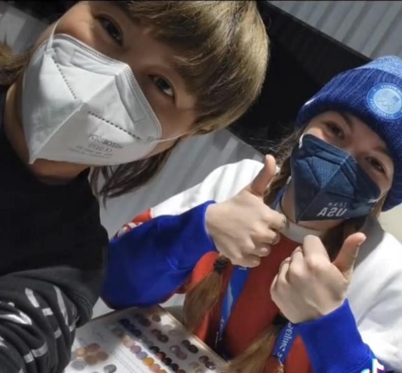 2月7日,安娜·霍夫曼分享了她在冬奥村里美甲的视频,还晒出了与美甲师的合照,看起来对这位美甲师是非常满意了。