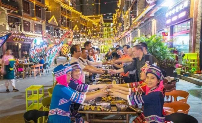 大化瑶族自治县的夜晚,群众在街头聚餐(央广网发 大化瑶族自治县融媒体中心供图)
