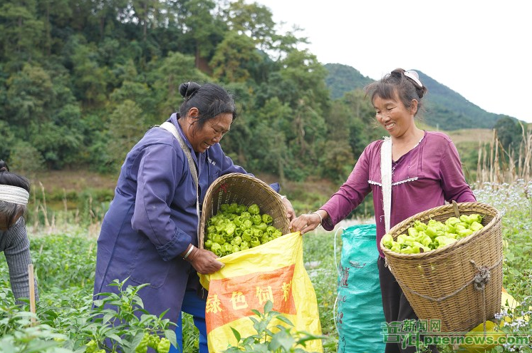 △镇沅县者东镇村民正在采摘蔬菜。 (普洱日报记者 卢磊 摄)
