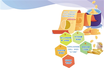注册制以信息披露为核心,体现在“五个清楚”:发行人对投资者要“讲清楚”,作为第一责任人,对信息披露的真实、准确、完整负责;中介机构要“核清楚”,对信息披露质量进行核查验证,承担把好关责任;审核机构要“问清楚”,从投资者需求出发,通过公开的审核问询,督促发行人和中介机构保证信息披露质量;投资者要“想清楚”,基于发行人披露的信息,自行判断是否购买股票,以什么价格购买股票,做到买者自负;监督机构和司法机关要“查清楚”,对于欺诈发行、信息披露违法违规行为,查清事实、严格执法、依法追究法律责任。