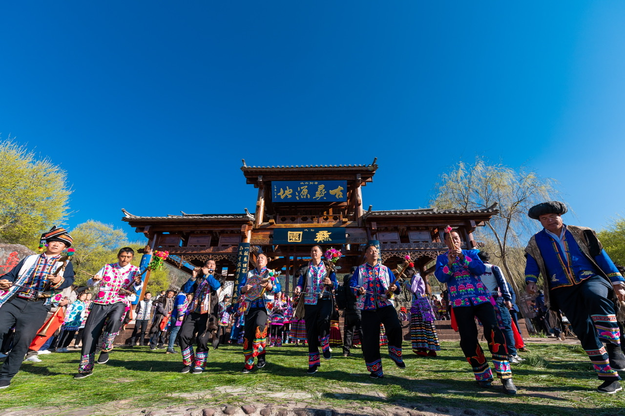 除了千柏林主会场,直播镜头还带领网友们逐一走进了拉乍们、彝园分会场。以古香古色的小镇为背景,这天,昙华乡内到处是欢天喜地的景象,当地彝族同胞众纷纷穿上了盛装载歌载舞展现民族自信,展望美好新生活。
